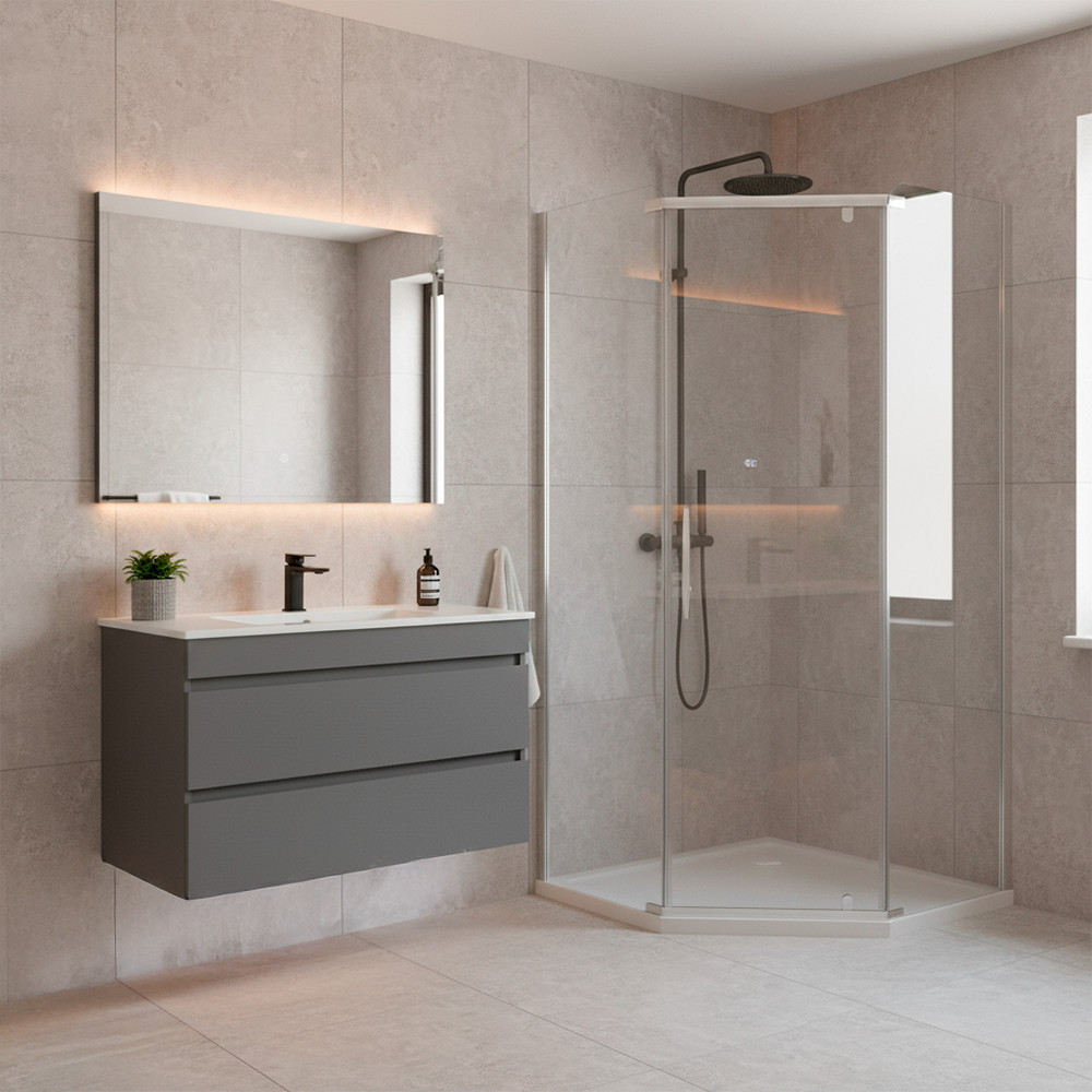 A Leziter Celtic 90×90 cm-es zuhanykabin jól illeszkedik a modern fürdőszobai környezethez. Letisztult, ötszögletű formája harmonikusan illik a legtöbb burkolathoz és szaniterhez.