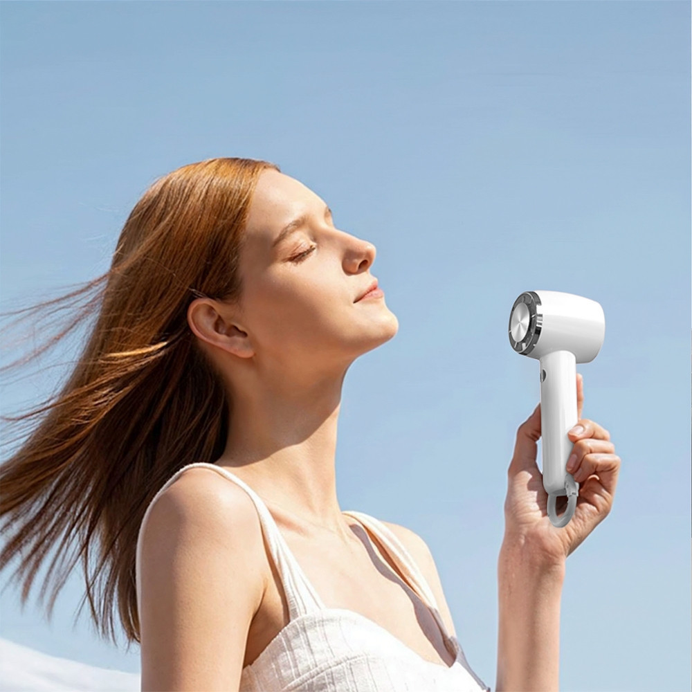 A ventilátor állítható döntési szögének köszönhetően nemcsak kézben használható, hanem stabilan az asztalra is állítható – így írás, munka vagy sminkelés közben is élvezheted a hűsítő hatást.